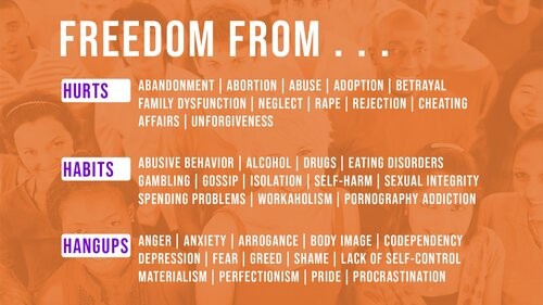 Celebrate Recovery is a Christ-centered, twelve-step ministry for those overwhelmed by hurts, hang-ups, and habits, and who want to experience the freedom that Jesus gives.